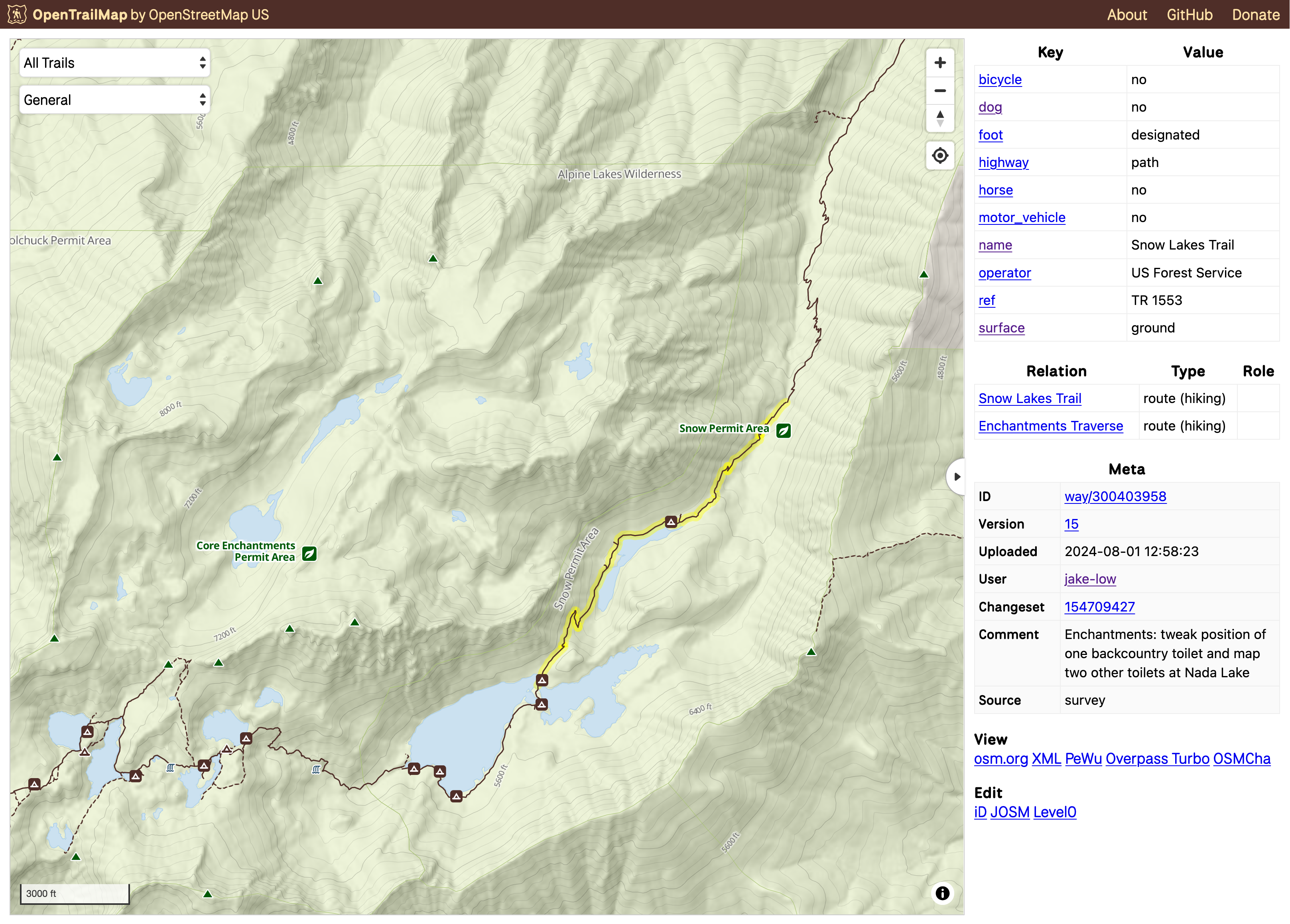 OpenTrailMap is a prototype web map application for viewing OpenStreetMap (OSM) trail data. The tool is being developed in support of our Trails Stewardship Initiative, a collaborative effort to improve the quality of trail data in OSM.